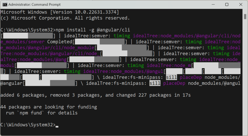 - Type “npm install -g @angular/cli” and hit ENTER to install the Angular CLI (Command Line Interface)