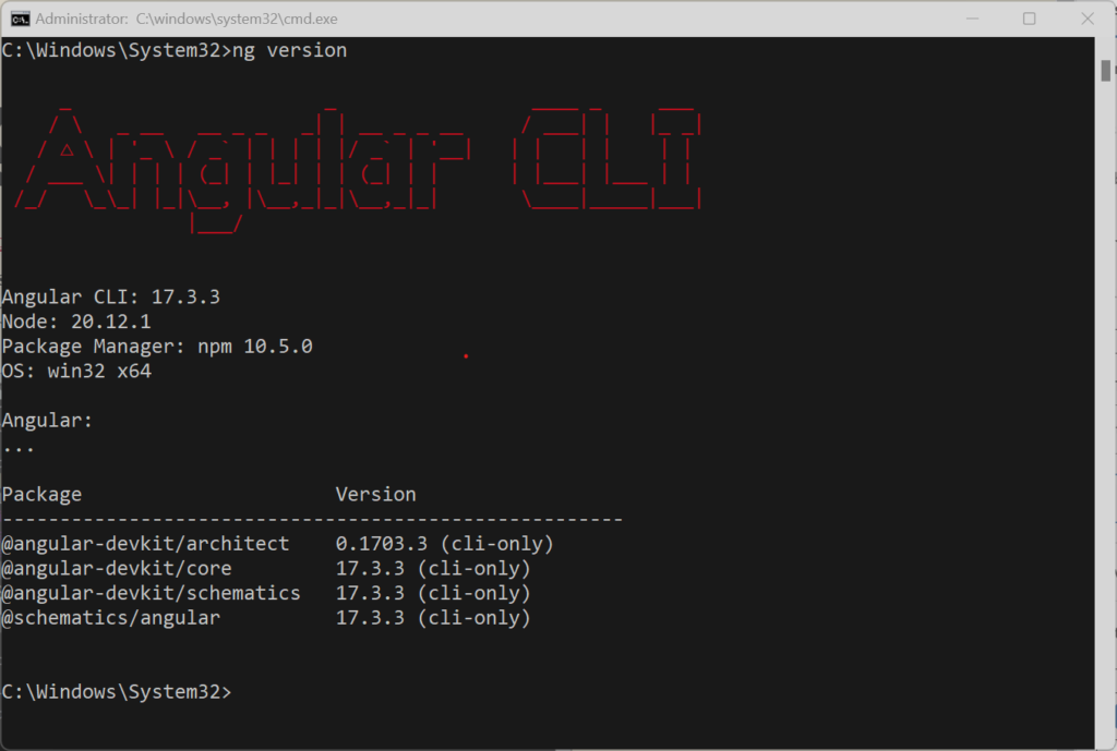 - Now type “ng version” to ensure Angular CLI was properly installed. It should look something like the screenshot below.
