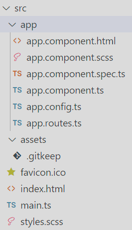 • styles.scss HTLM5 uses element, identifier and class styles to make our webpage and the components within it look a certain way (height, width, color, fonts, borders, margins, padding, etc.), and this file contains the styles in SCSS format, which gets compiled down to .CSS when we build the application, more on this later.