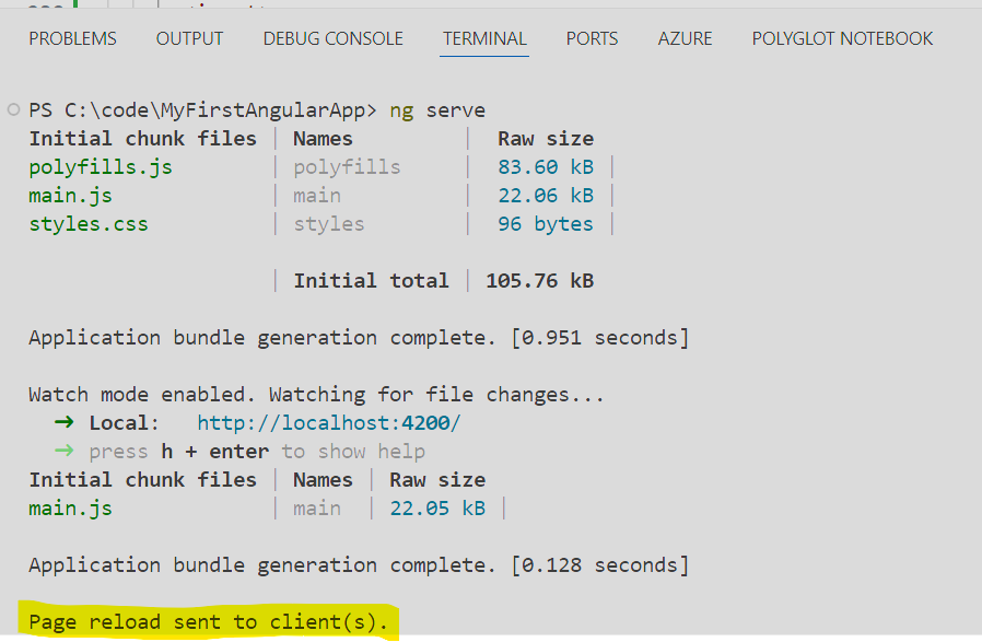 And there you have it! It’s important to understand that the hot reload will detect changes and reload the application for you if any .html, .less, .css, .scss, .js and .ts files you may have in your project are updated.